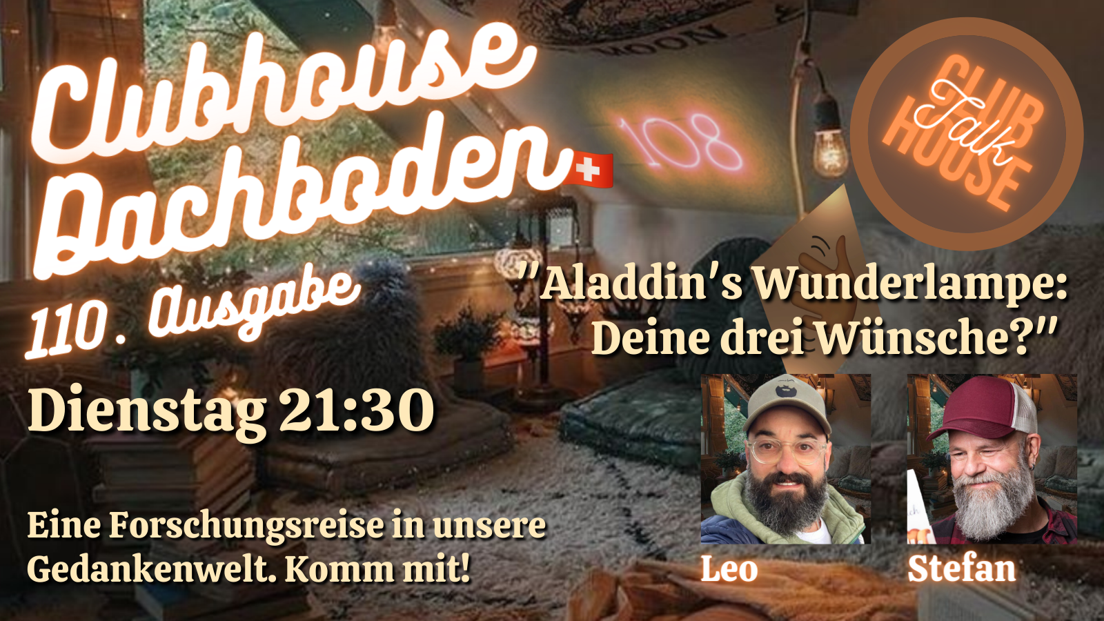 Am Dienstag 22. August 2023 um 21:30 ist es wieder soweit. Wir öffnen den „Dachboden“ auf Clubhouse, wie normalerweise jeden Dienstag um diese Uhrzeit.