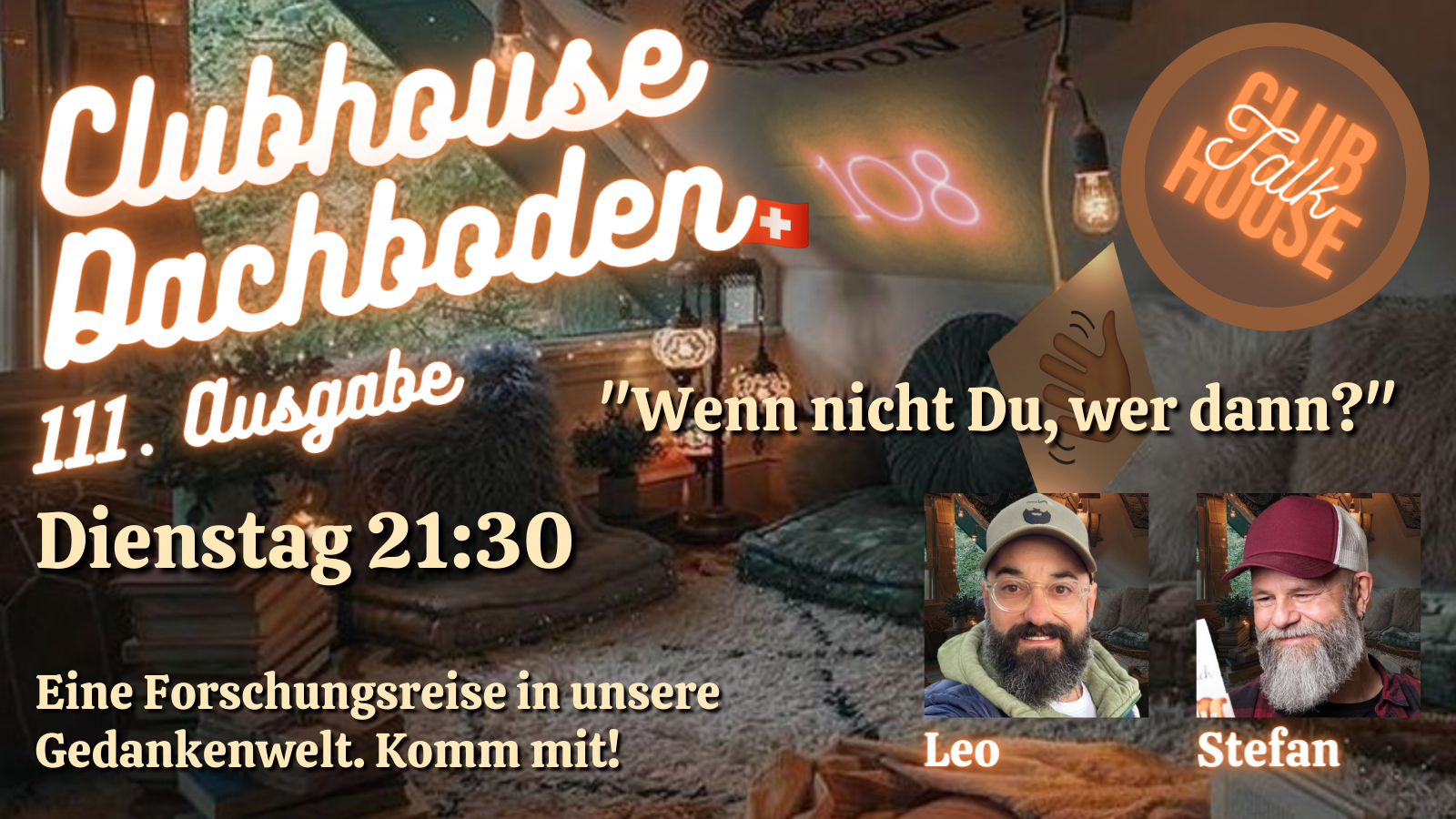 Am Dienstag 29. August 2023 um 21:30 ist es wieder soweit. Wir öffnen den „Dachboden“ auf Clubhouse, wie normalerweise jeden Dienstag um diese Uhrzeit.