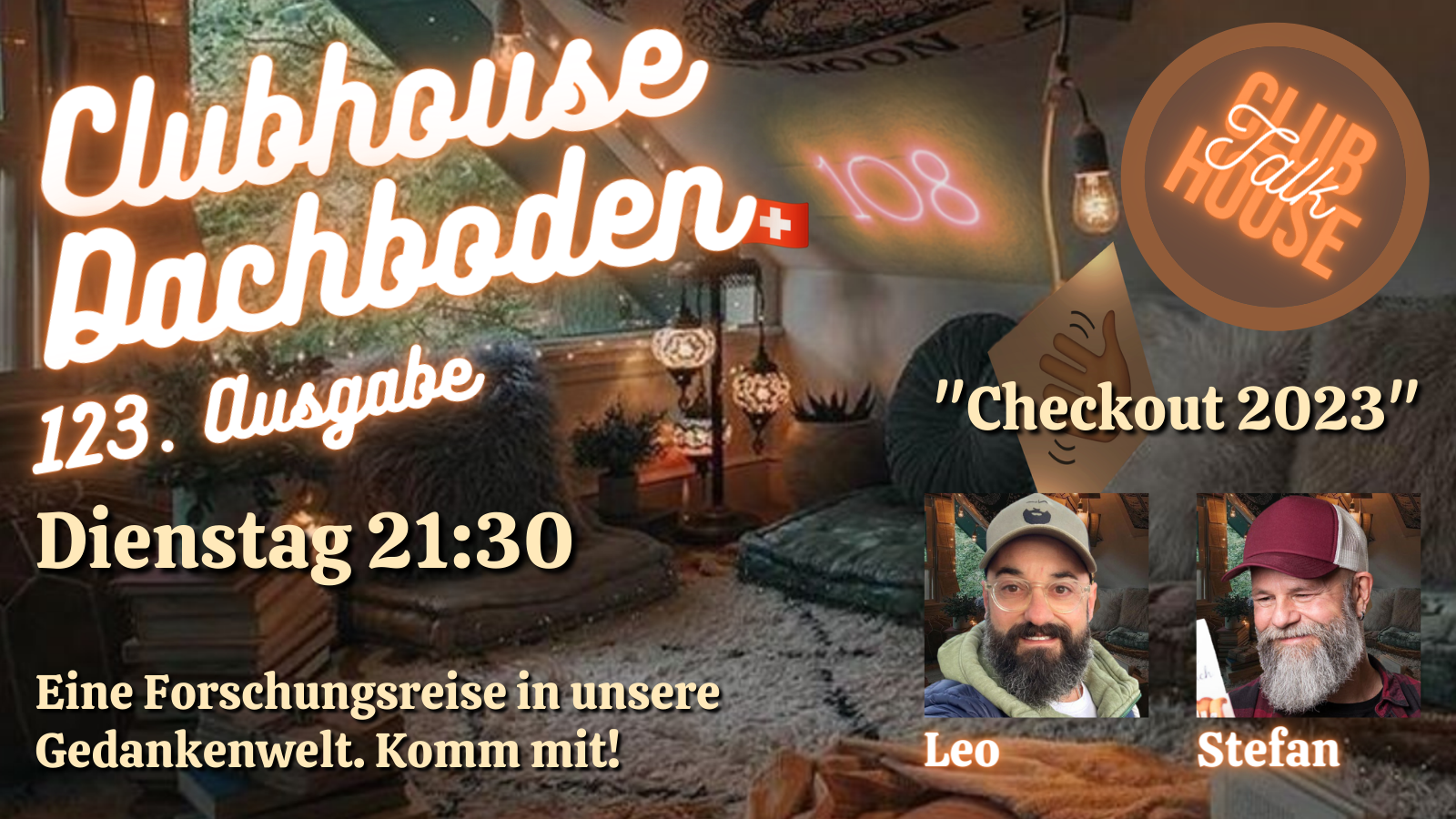 Am Dienstag 19. Dezember 2023 um 21:30 ist es wieder soweit. Wir öffnen den „Dachboden“ auf Clubhouse, wie normalerweise jeden Dienstag um diese Uhrzeit.