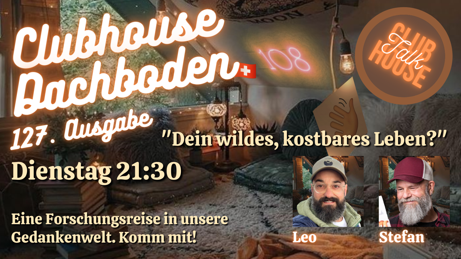 Am Dienstag 30. Januar 2024 um 21:30 ist es wieder soweit. Wir öffnen den „Dachboden“ auf Clubhouse, wie normalerweise jeden Dienstag um diese Uhrzeit.
