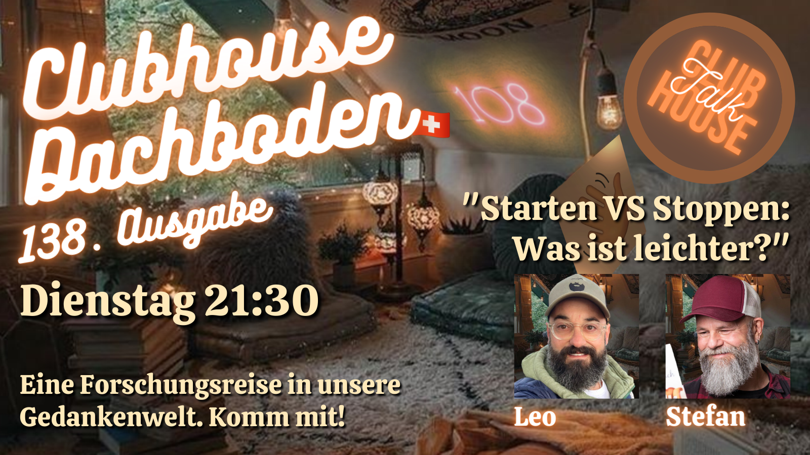 Am Dienstag 16. April 2024 um 21:30 ist es wieder soweit. Wir öffnen den „Dachboden“ auf Clubhouse, wie normalerweise jeden Dienstag um diese Uhrzeit.
