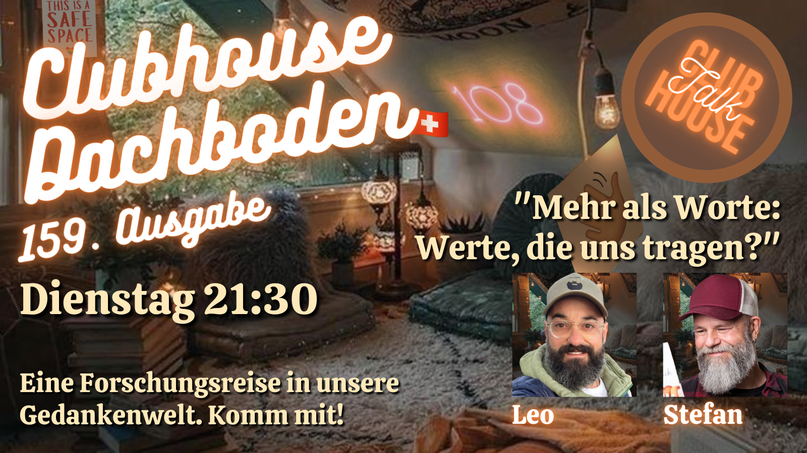 Am Dienstag, 8. Oktober 2024 um 21:30 ist es wieder soweit. Wir öffnen den „Dachboden“ auf Clubhouse, wie normalerweise jeden Dienstag um diese Uhrzeit.