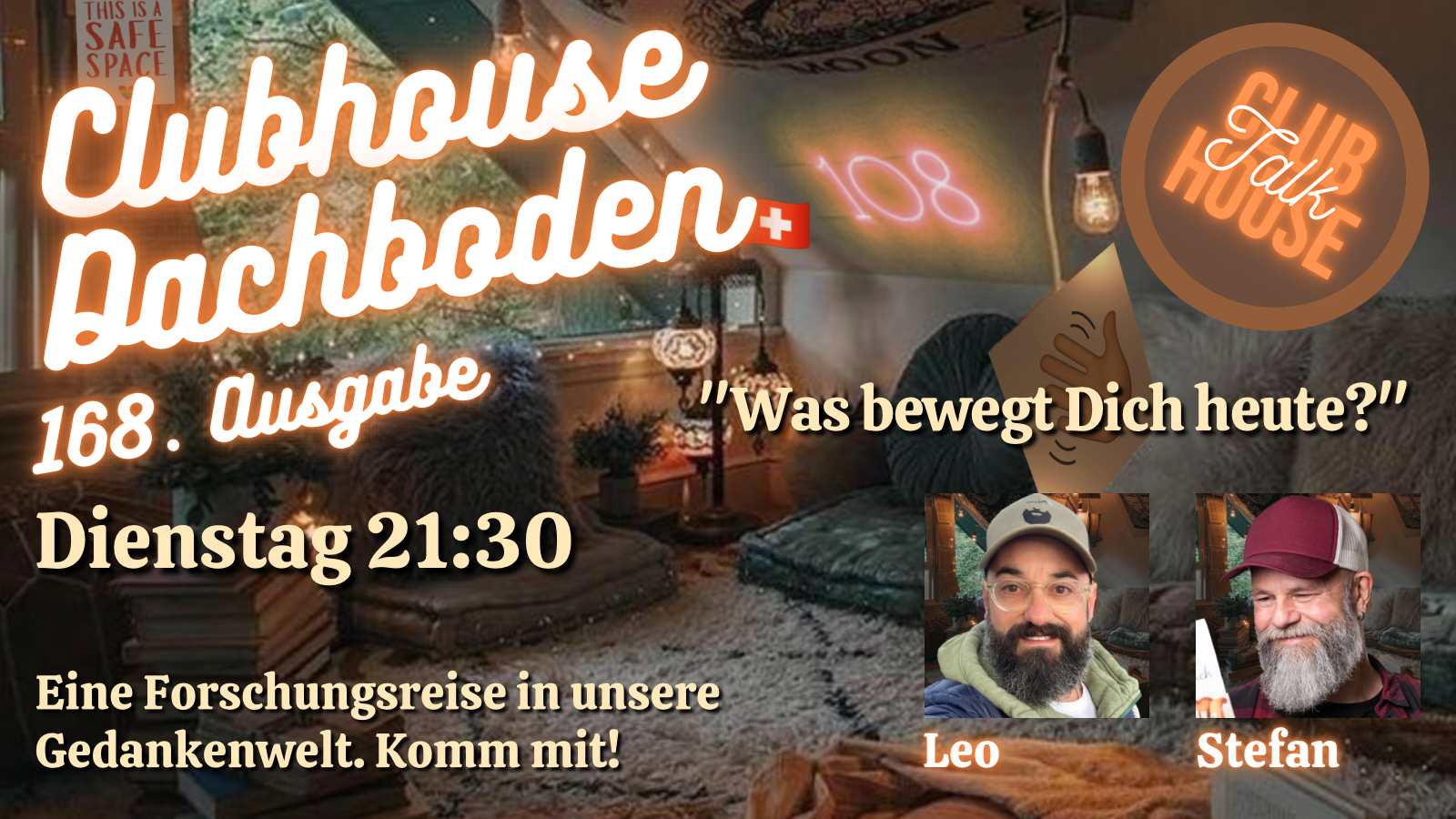Am Dienstag, 10. Dezember 2024 um 21:30 ist es wieder so weit. Wir öffnen den „Dachboden“ auf Clubhouse, wie normalerweise jeden Dienstag um diese Uhrzeit.