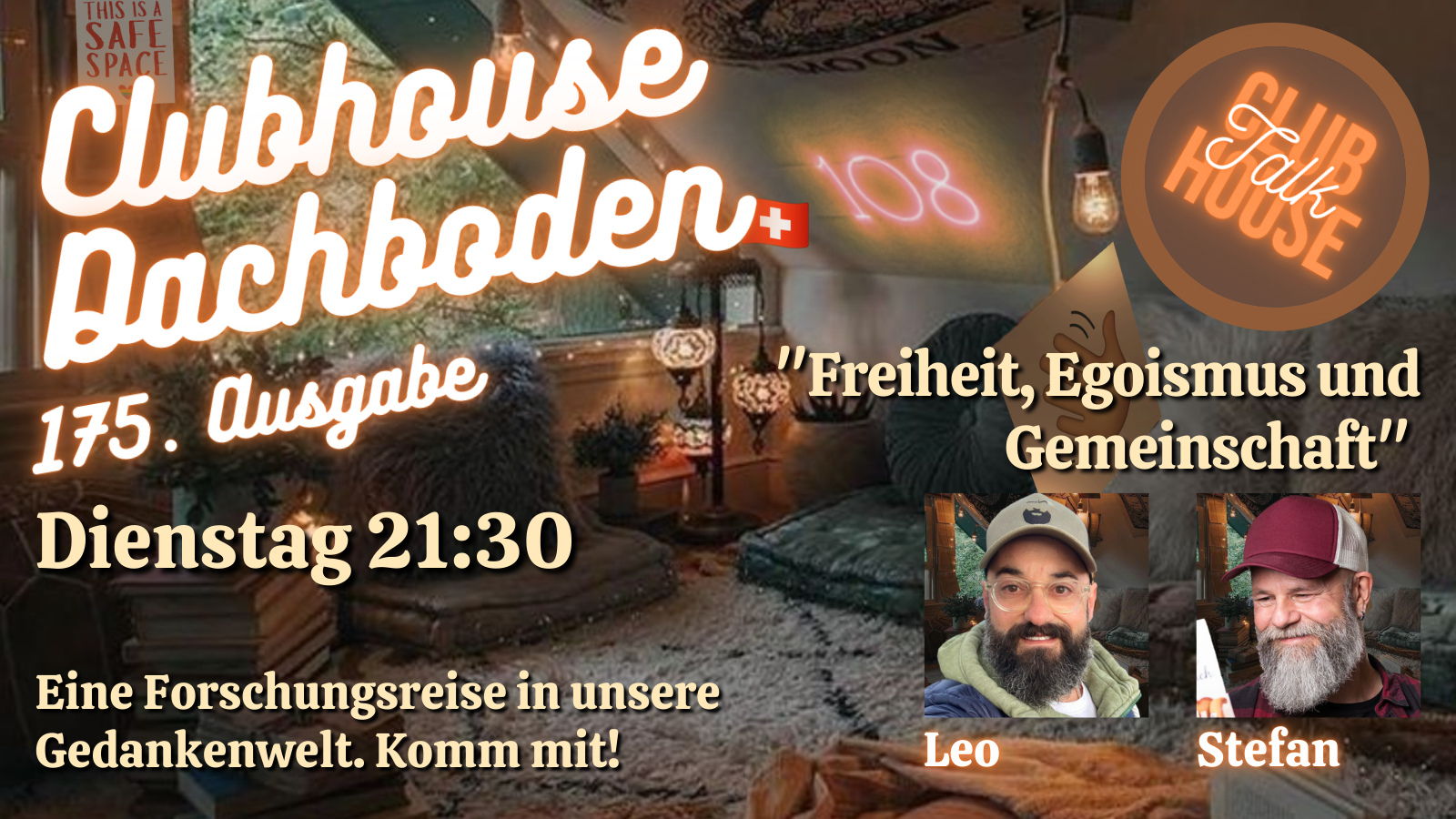 Am Dienstag, 11. Februar 2025 um 21:30 Uhr ist es wieder so weit. Wir öffnen den „Dachboden“ auf Clubhouse, wie normalerweise jeden Dienstag um diese Uhrzeit.