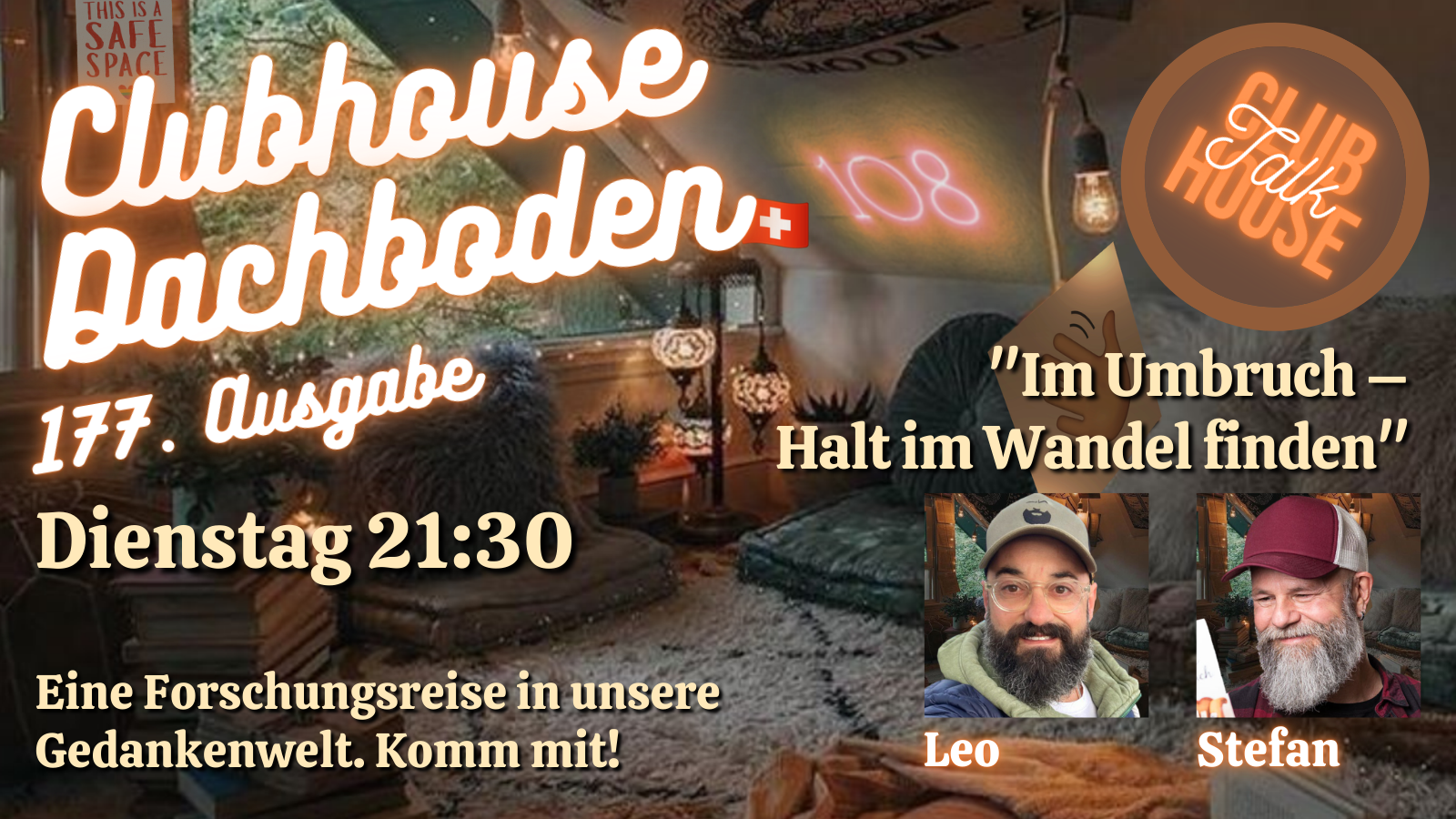 Am Dienstag, 25. Februar 2025 um 21:30 Uhr ist es wieder so weit. Wir öffnen den „Dachboden“ auf Clubhouse, wie normalerweise jeden Dienstag um diese Uhrzeit.