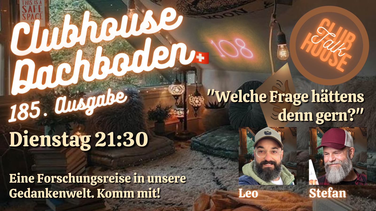 Am Dienstag, 22. April 2025 um 21:30 Uhr ist es wieder so weit. Wir öffnen den „Dachboden“ auf Clubhouse, wie normalerweise jeden Dienstag um diese Uhrzeit.