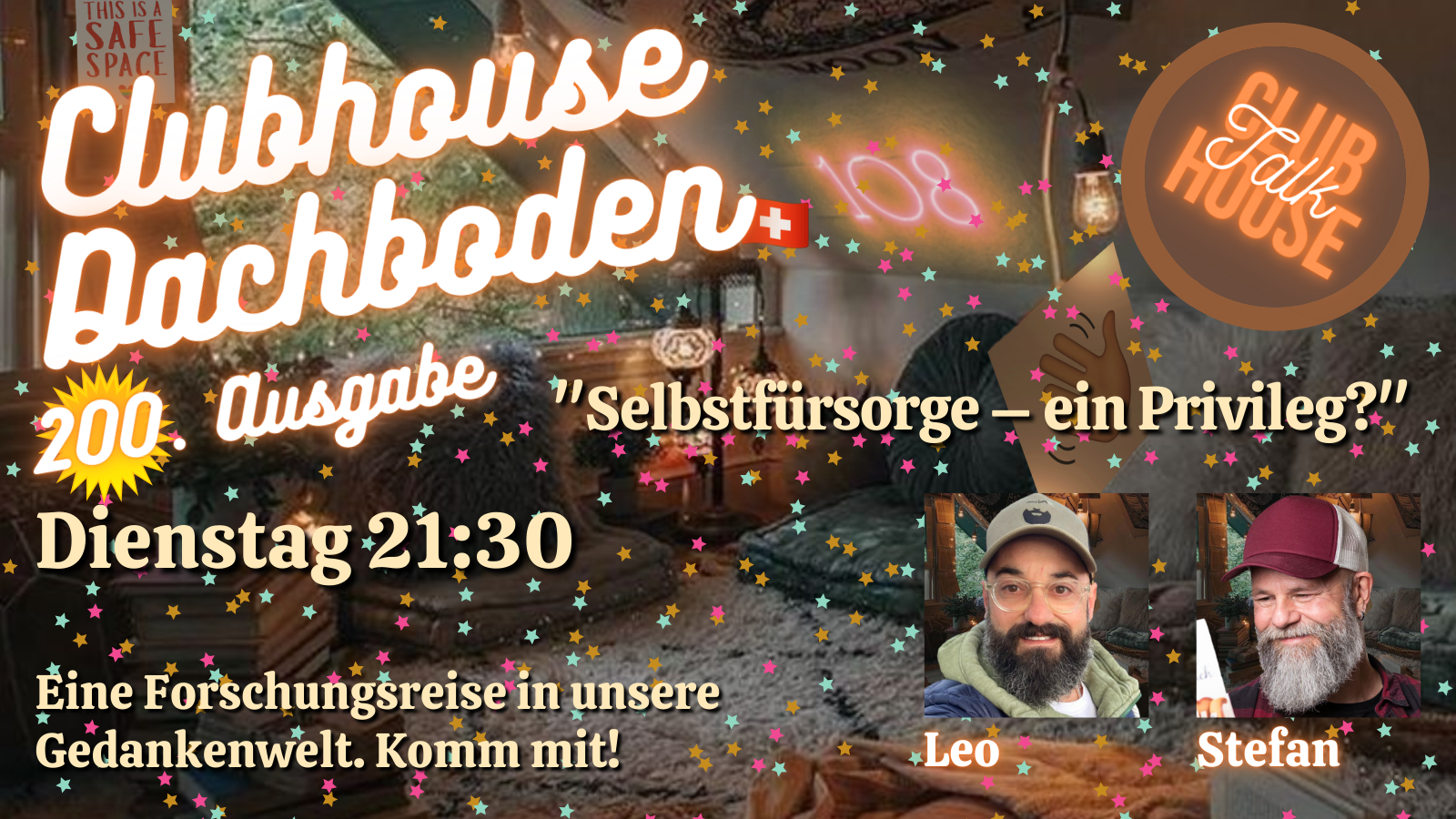 Am Dienstag, 26.08.2025 um 21:30 Uhr ist es wieder so weit. Wir öffnen den „Dachboden“ auf Clubhouse, wie normalerweise jeden Dienstag um diese Uhrzeit.