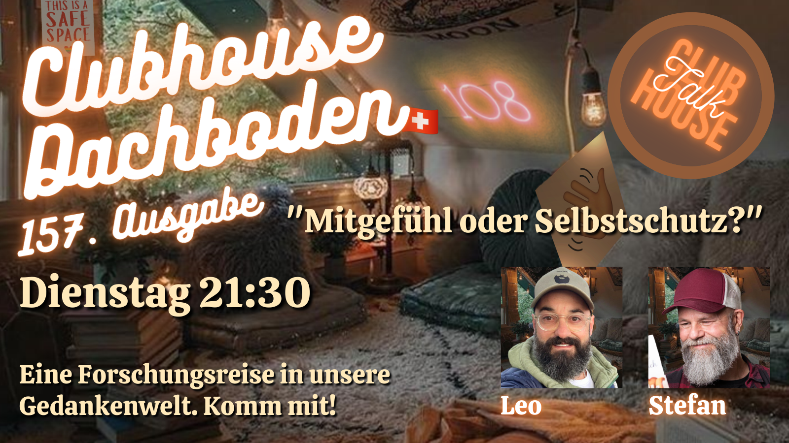 Am Dienstag, 8. Oktober 2024 um 21:30 ist es wieder soweit. Wir öffnen den „Dachboden“ auf Clubhouse, wie normalerweise jeden Dienstag um diese Uhrzeit.