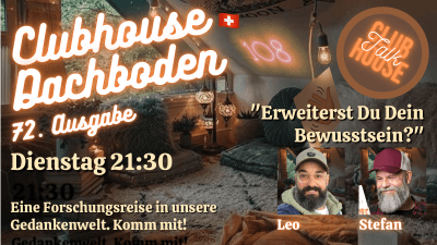 Am Dienstag 30. August um 21:30 ist es wieder soweit. Wir öffnen den „Dachboden“ auf Clubhouse, wie normalerweise jeden Dienstag um diese Uhrzeit.
